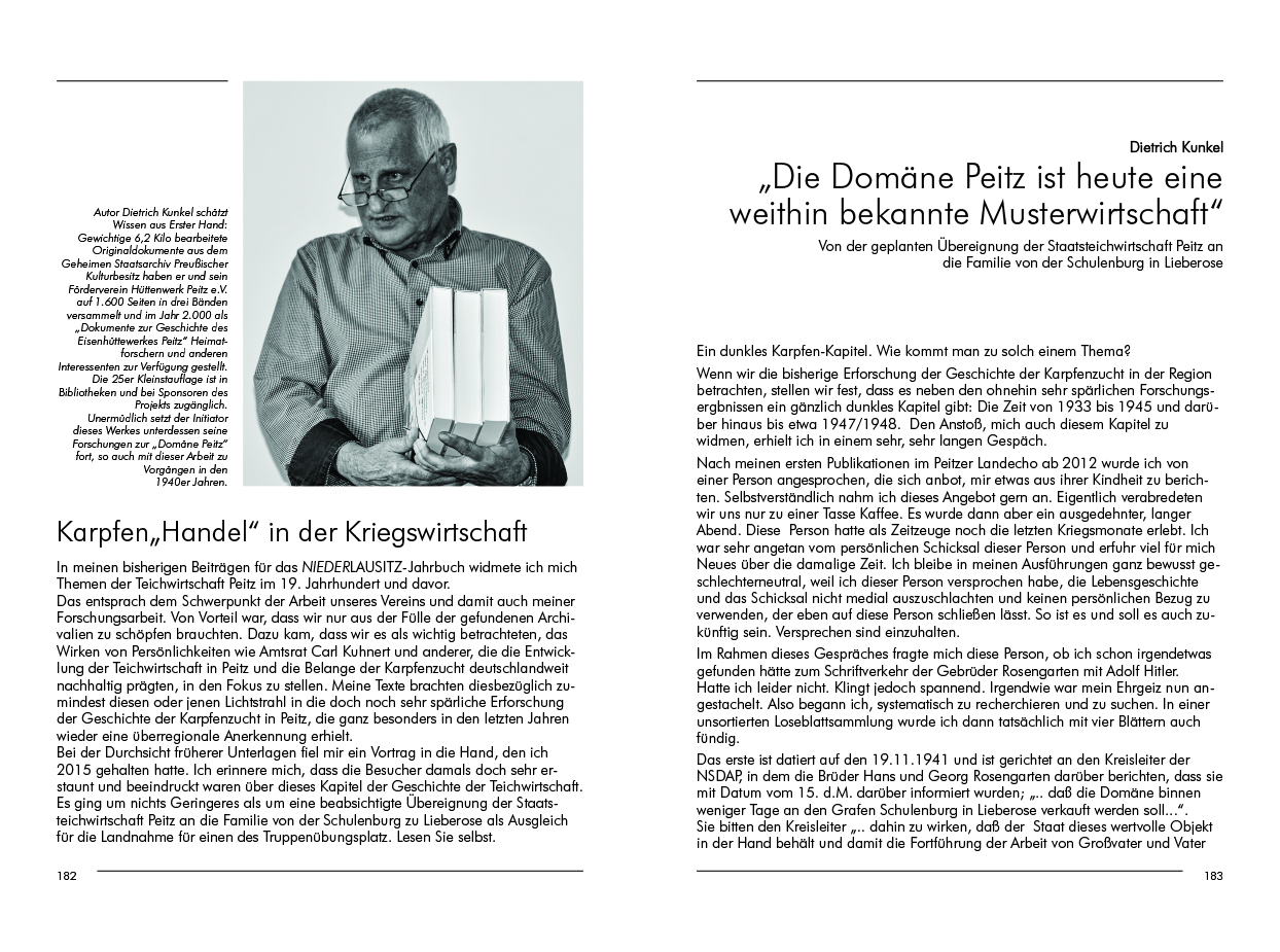 In Peitz folgt Torsten Jupe in vierter Folge dem Leben im Rittervorwerk. Dietrich Kunkel beschäftigt sich mit Ansprüchen der Lieberoser Schulenburgs auf die Peitzer Domäne und Friedrich Bange erinnert an den Start des zweiten Landambulatoriums in Brandenburg.