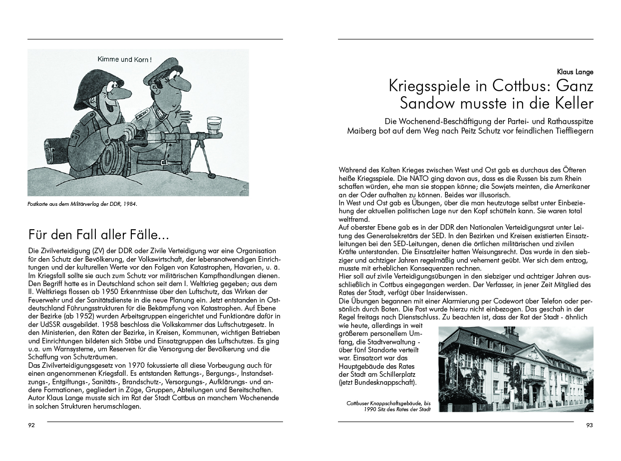 Marion Jurisch und Klaus Lange runden den Lesestoff mit einem Kirchenbesuch, dem Blick in historisches Schulwesen und in erlebte „Kriegsspiele“ ab.